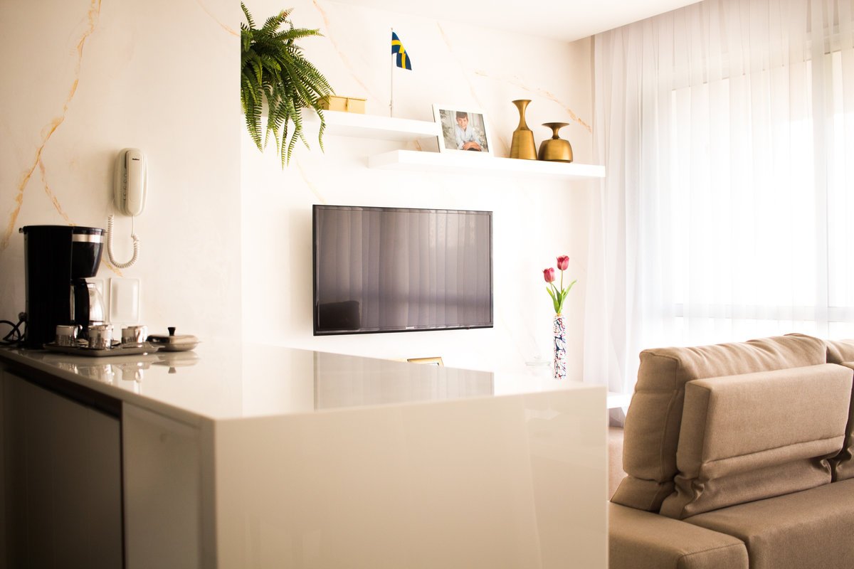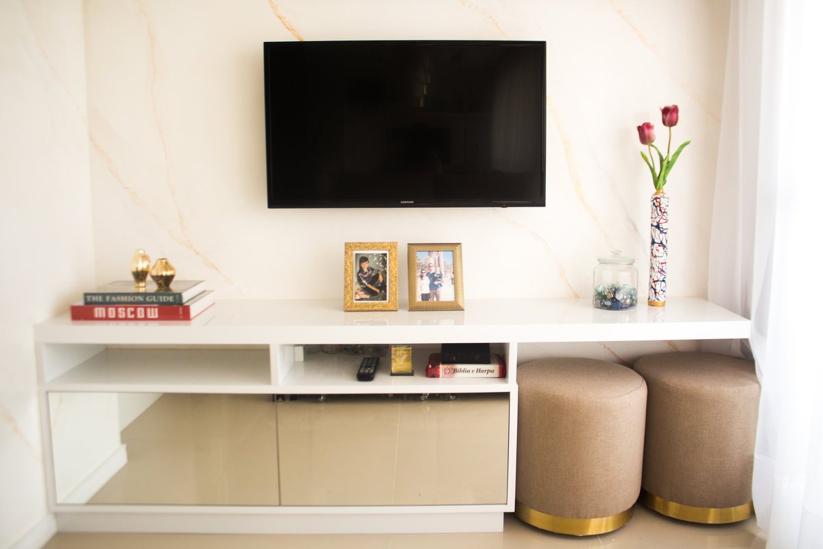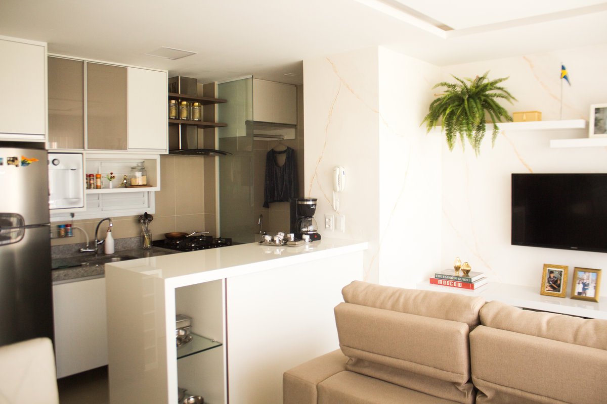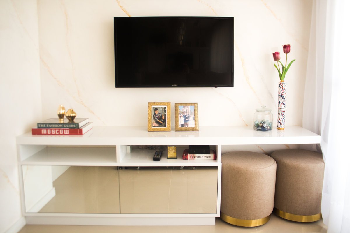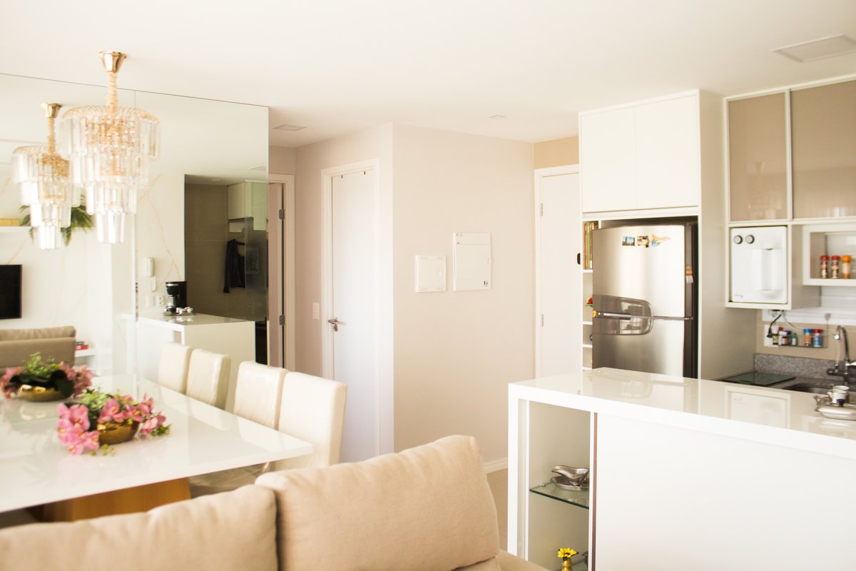 Esse projeto tem um lugar especial na minha trajetória, foi o primeiro projeto residencial que eu fiz acompanhamento de obra e pude ver nascendo desde o início até a produção final. O pedido das clientes foi um espaço neutro, clássico, com muita iluminação e sem grandes intervenções de obra. Mantemos todos os acabamentos entregues pela construtora e acrescentamos a marcenaria projetada e a identidade das clientes em todos os cantinhos.