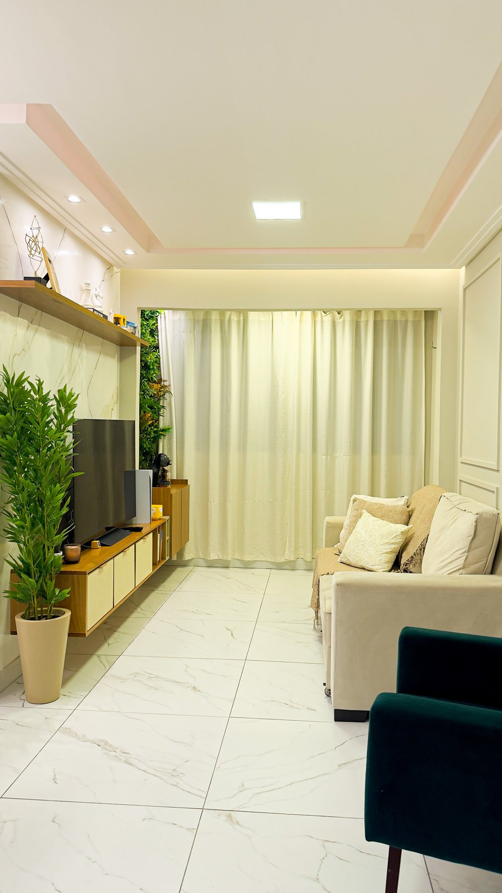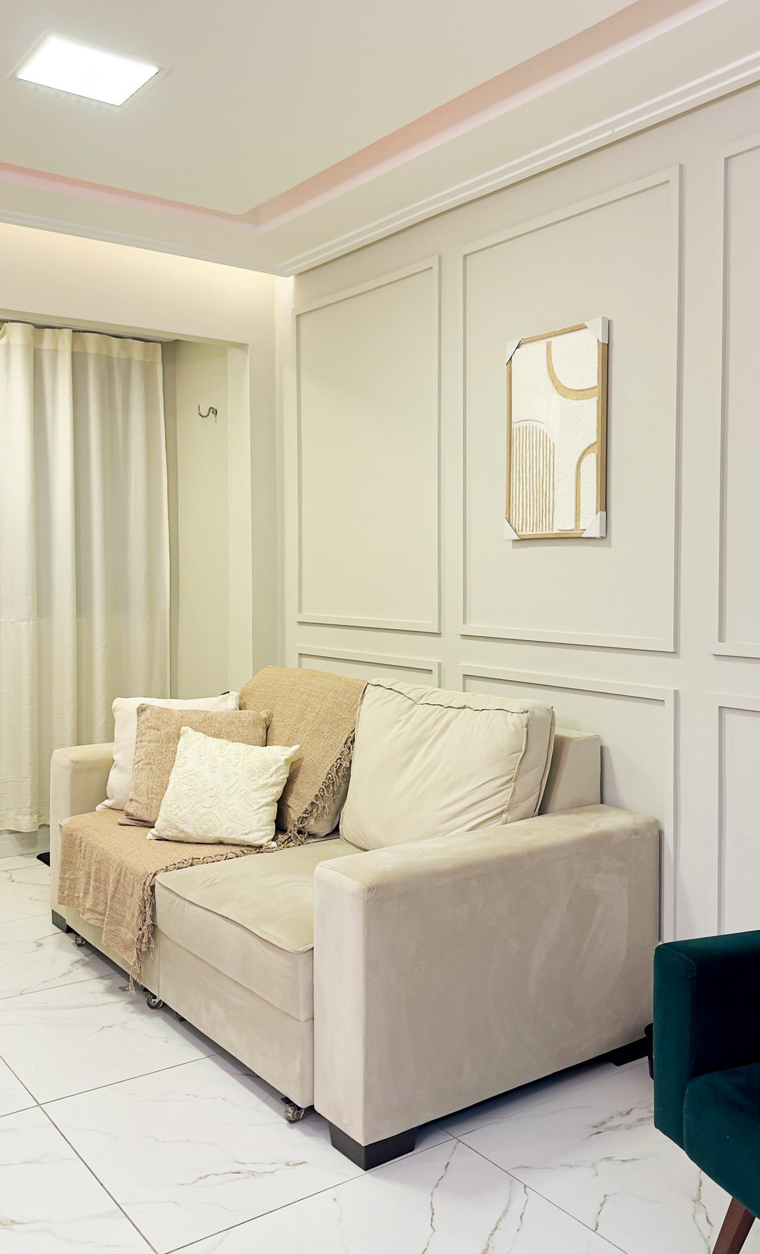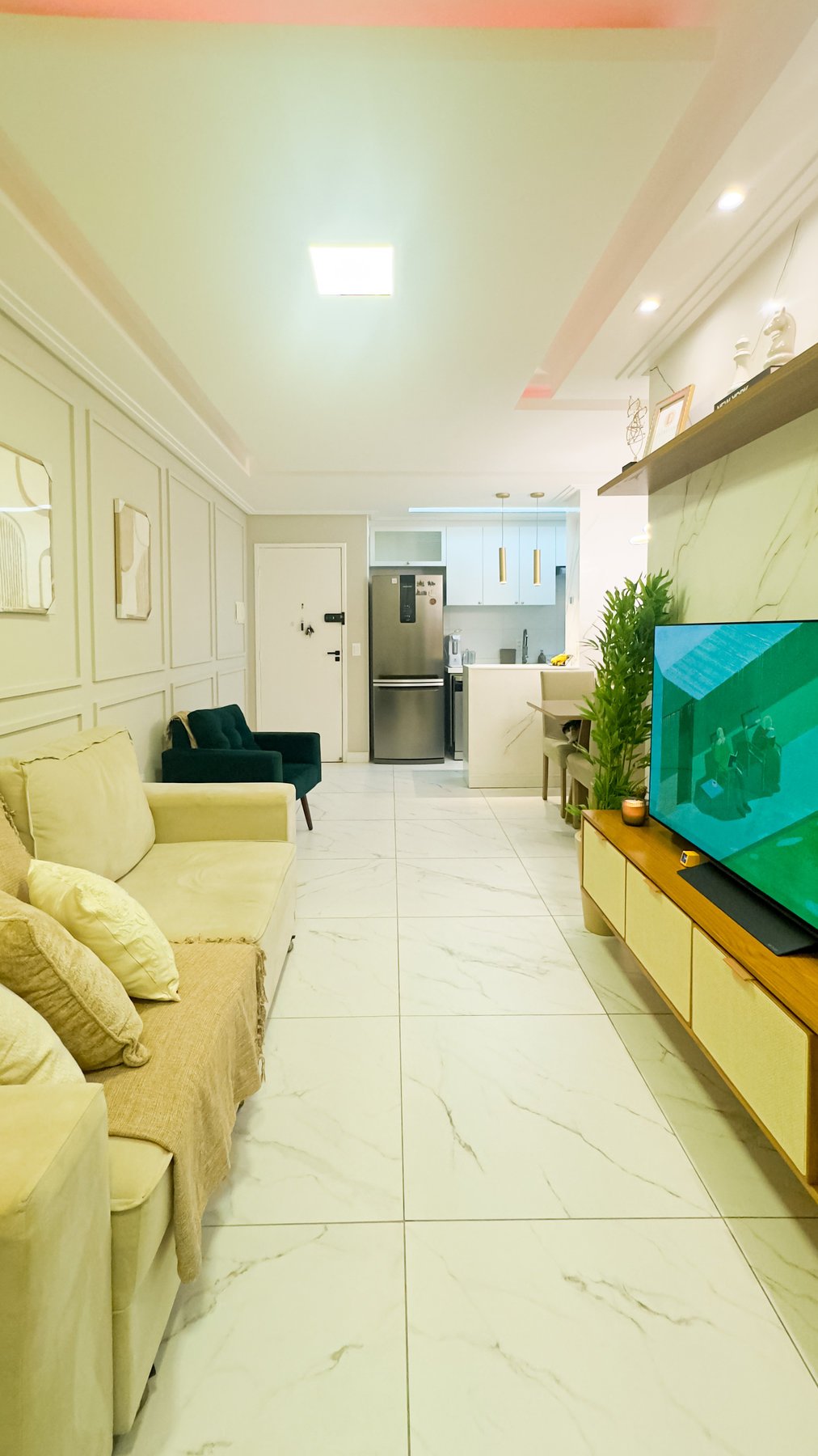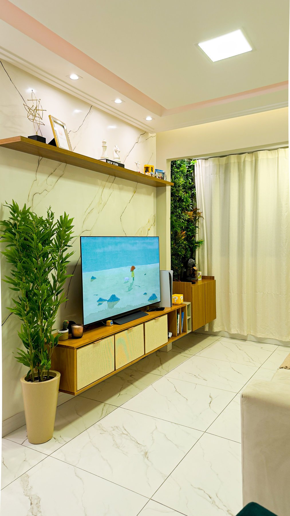 O principal objetivo desse projeto foi fazer mudanças conscientes, que vão valorizar e deixar ainda mais funcional o espaço. Integramos a sala com a varanda, valorizamos a entrada de luz natural e aumentamos o espaço de de marcenaria da área de rack da sala.