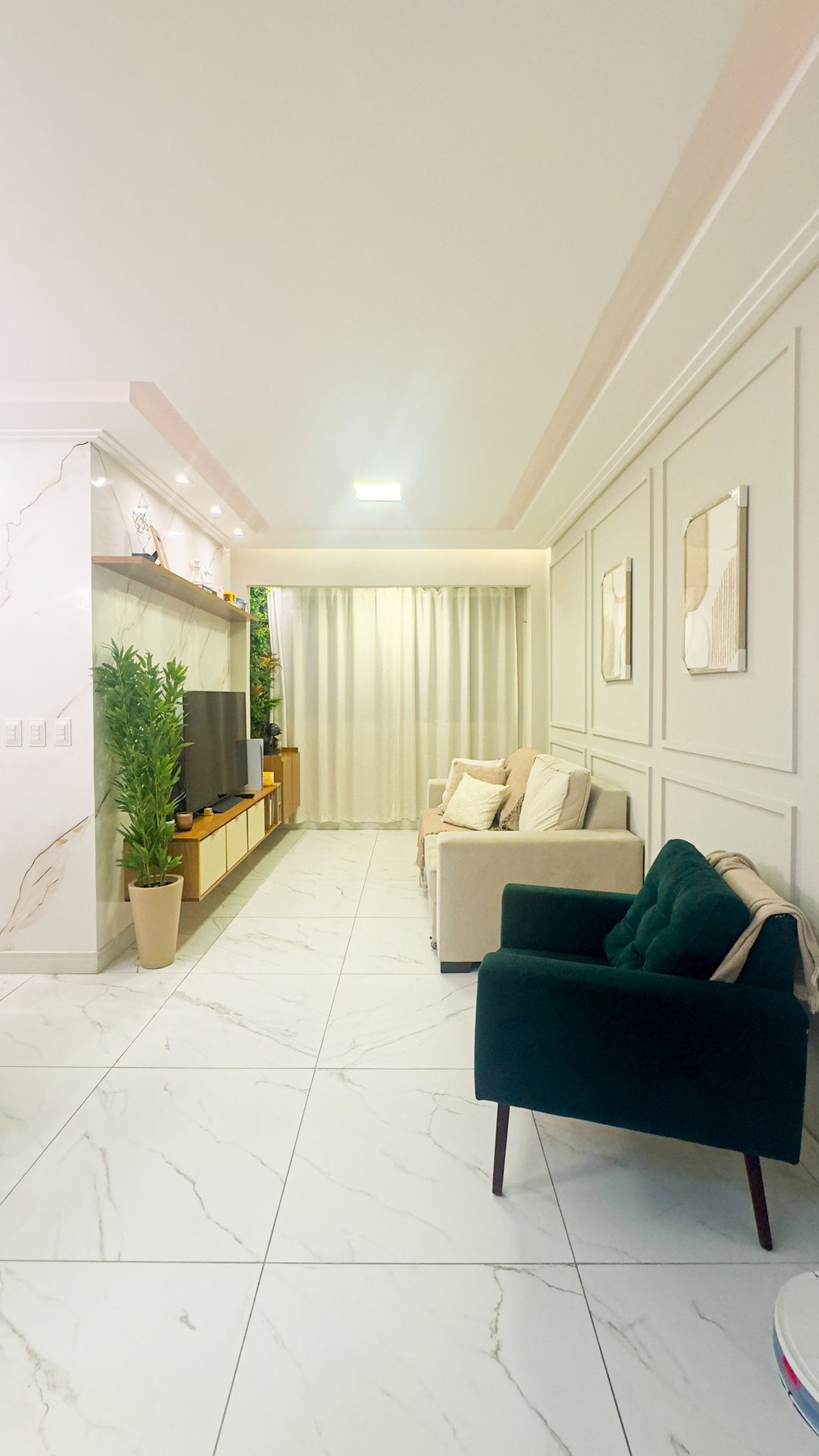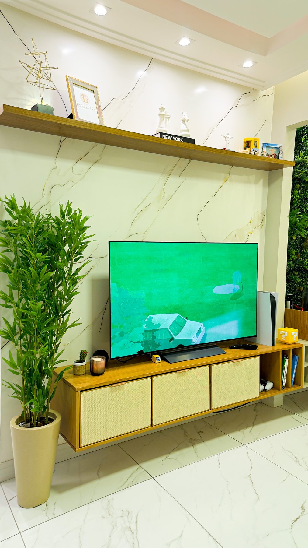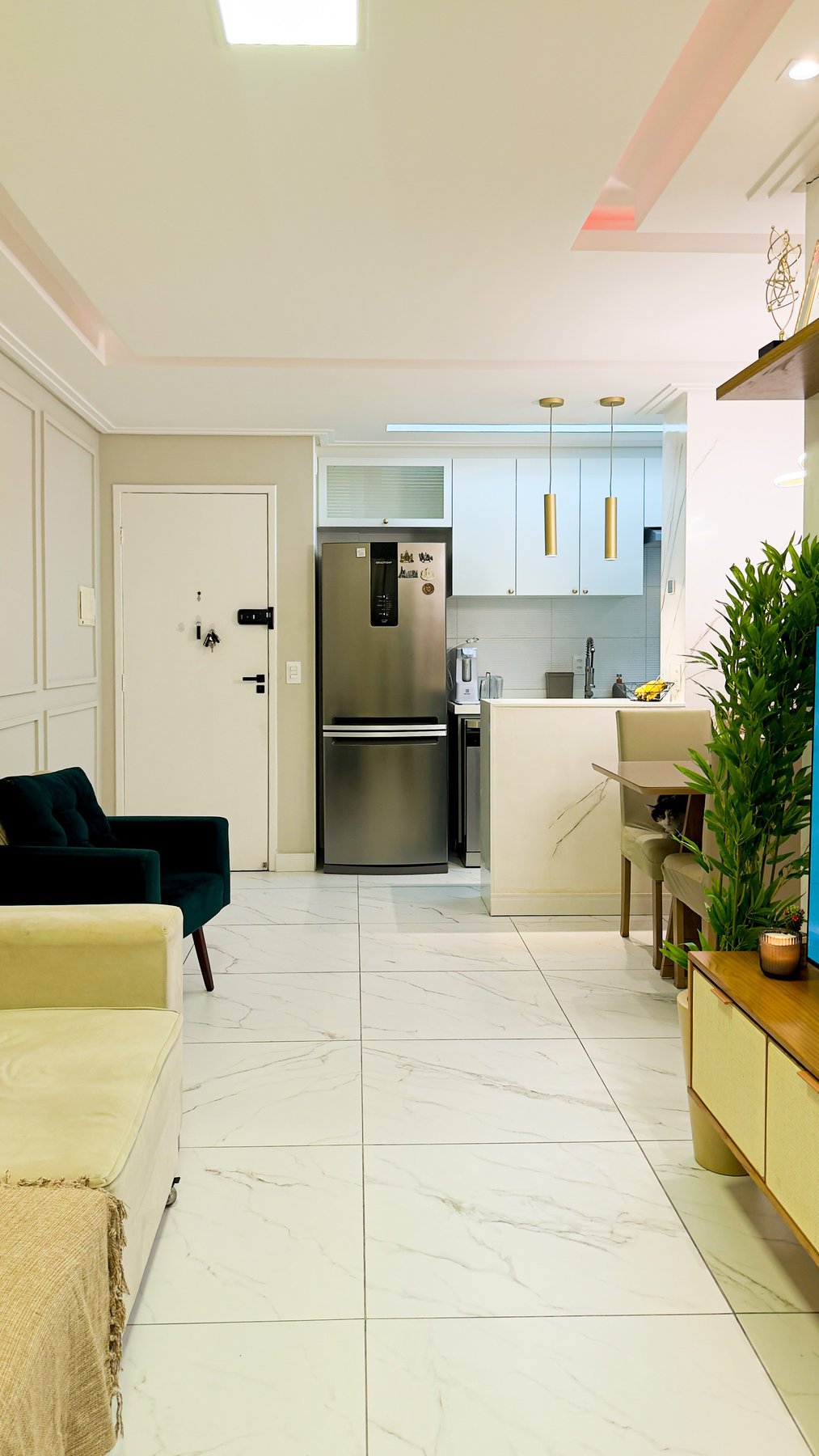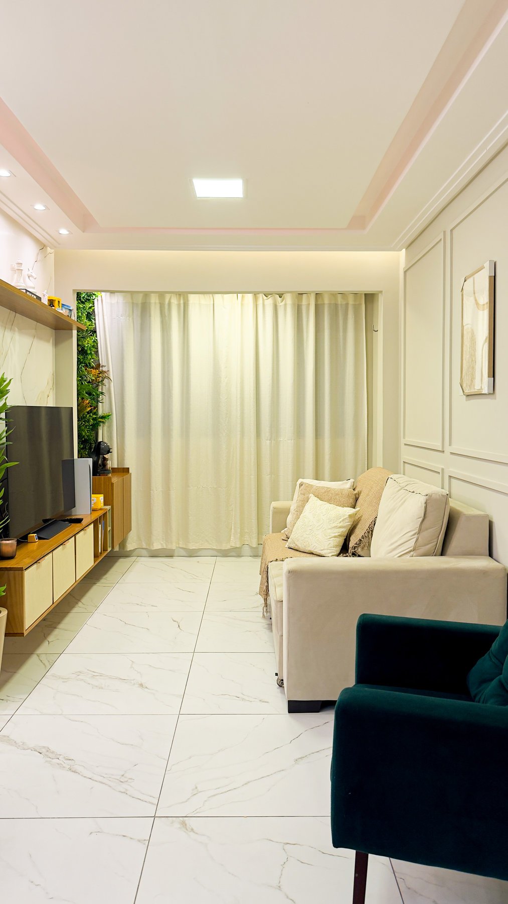 O principal objetivo desse projeto foi fazer mudanças conscientes, que vão valorizar e deixar ainda mais funcional o espaço. Integramos a sala com a varanda, valorizamos a entrada de luz natural e aumentamos o espaço de de marcenaria da área de rack da sala.