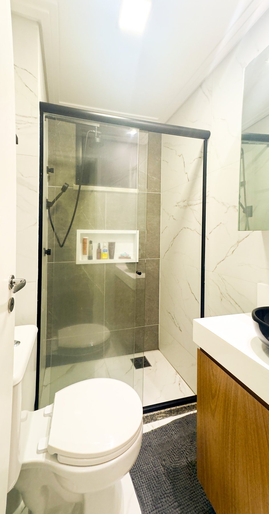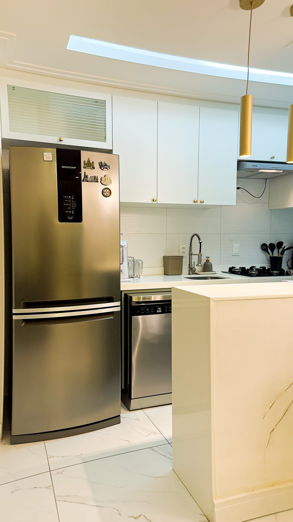 Todo o apartamento possui uma mescla perfeita entre o clássico e o moderno, tons neutros e cores claras. Utilizamos bastante madeira para trazer um toque quente e mais aconchegante para o espaço.