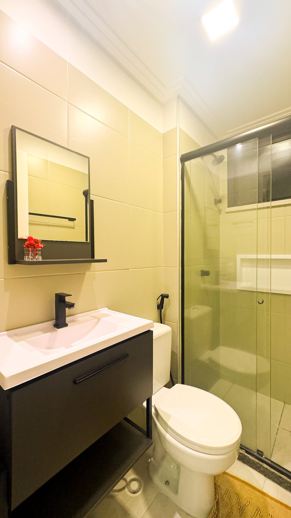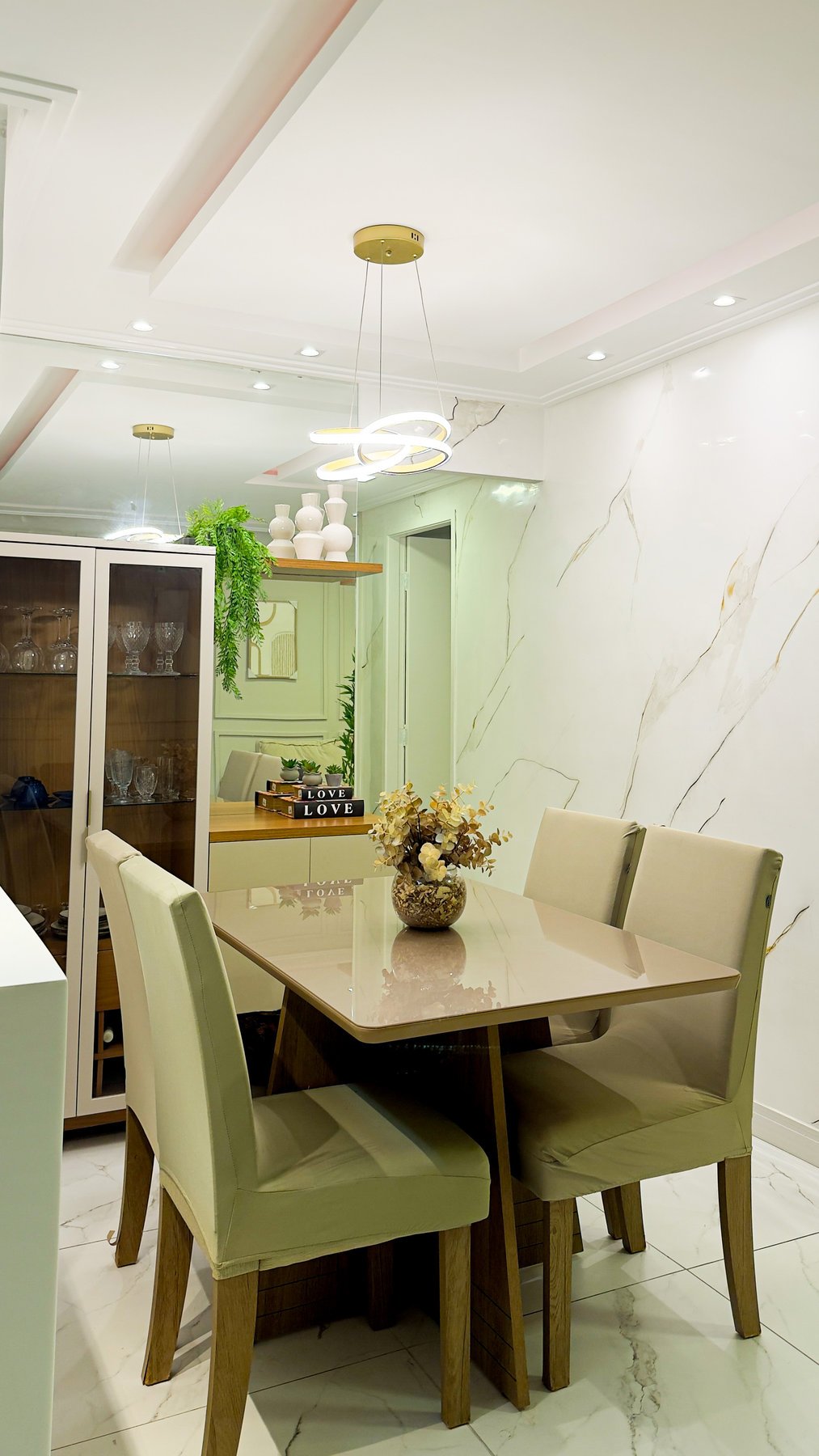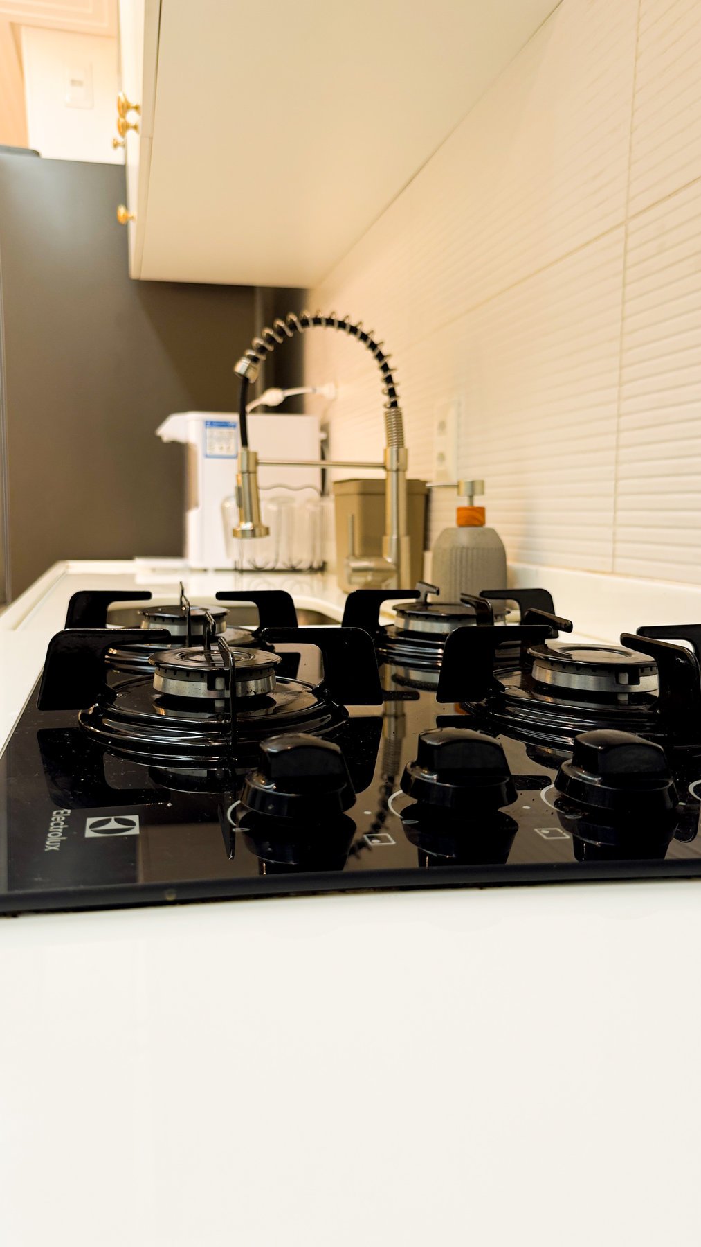 Para iluminação utilizamos tom amarelado, tornando o espaço super aconchegante e acolhedor. Estamos aproveitando quase toda a iluminação existente, apenas em alguns ambientes demos uma atualizada para deixar o espaço mais eficiente.