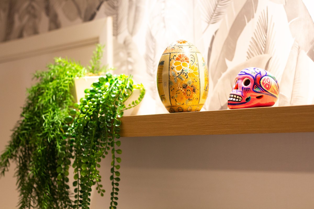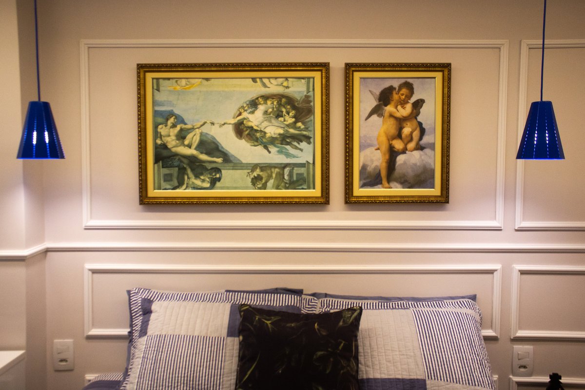 na cor branca. Nos demais ambientes, valorizamos o que já era existente e sempre demos destaque aos itens de viagem que vão sendo colecionados a cada nova experiência juntos.