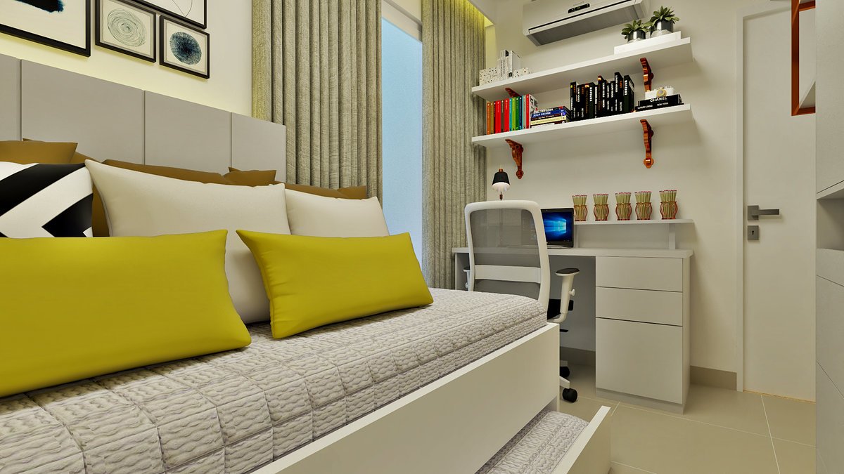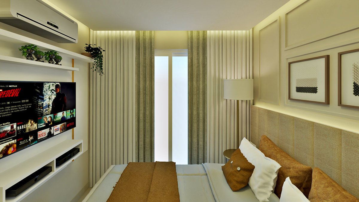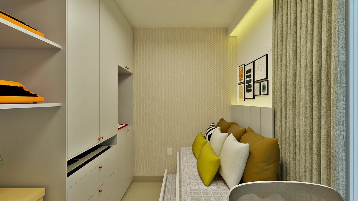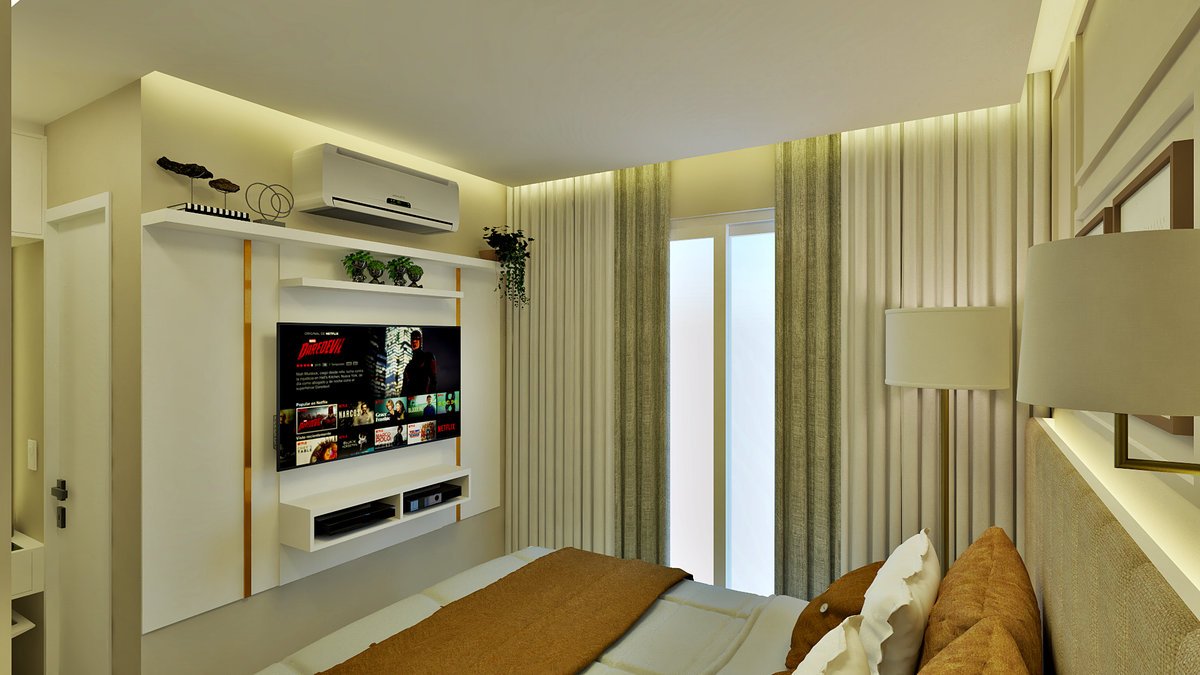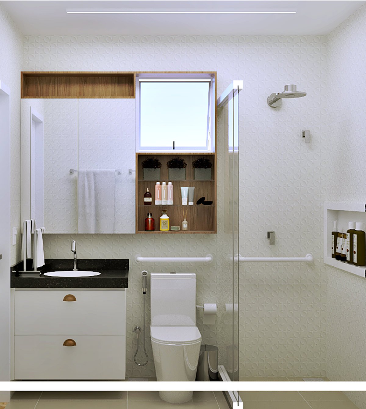 Um dos pedidos da cliente foi aproveitamento de todos os espaços com armários. Conseguimos fazer isso de forma leve e organizada. Usamos tons neutros para trazer amplitude e sensação de calma para os espaços. Conseguimos aproveitar todos os mobiliários existentes e valorizar todos os itens pessoais com valor afetivo.