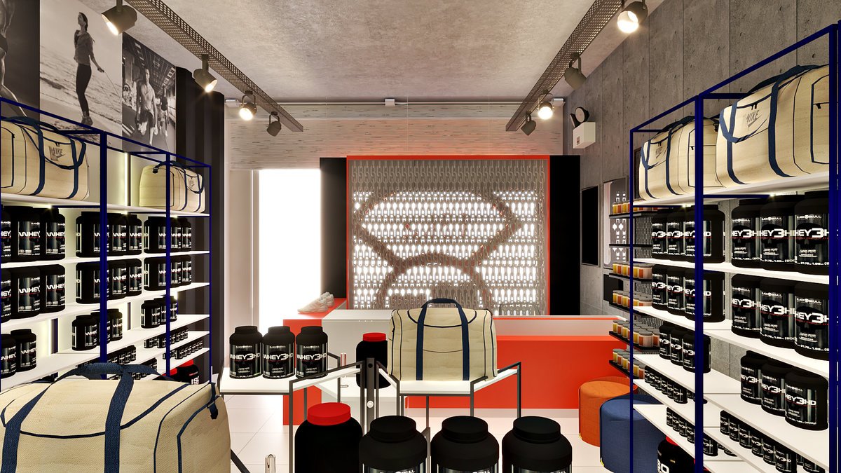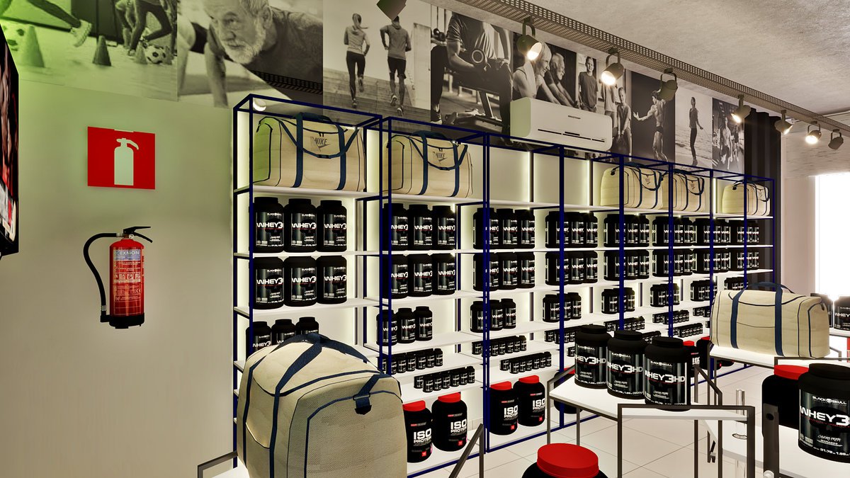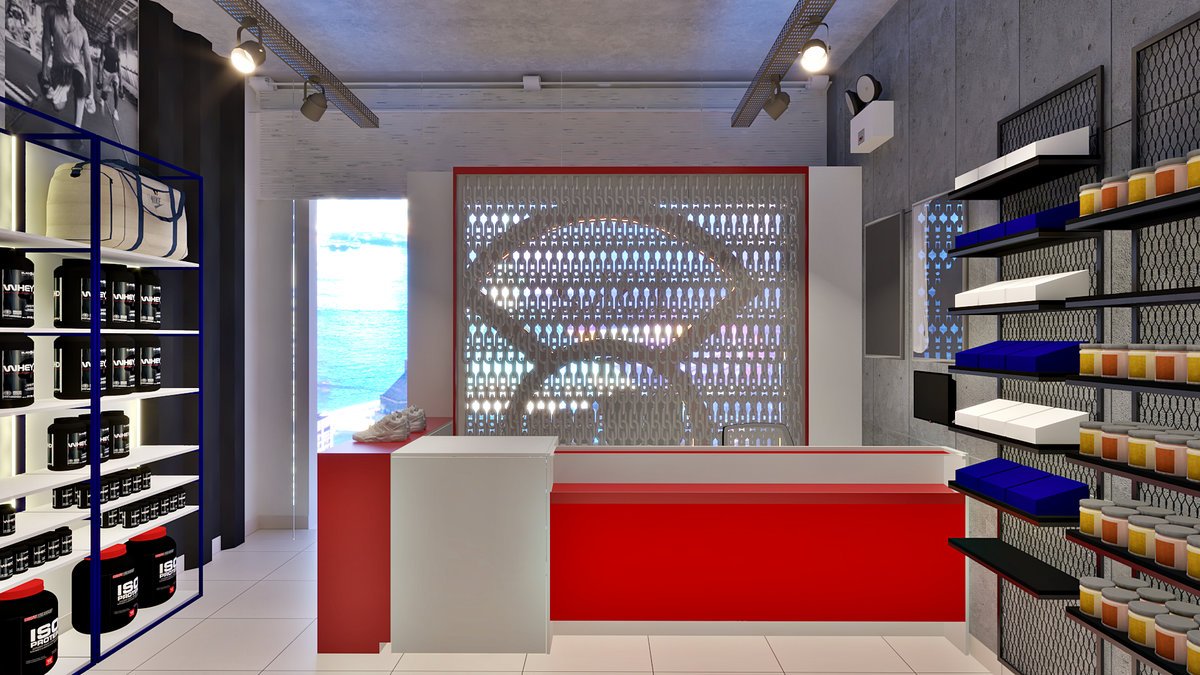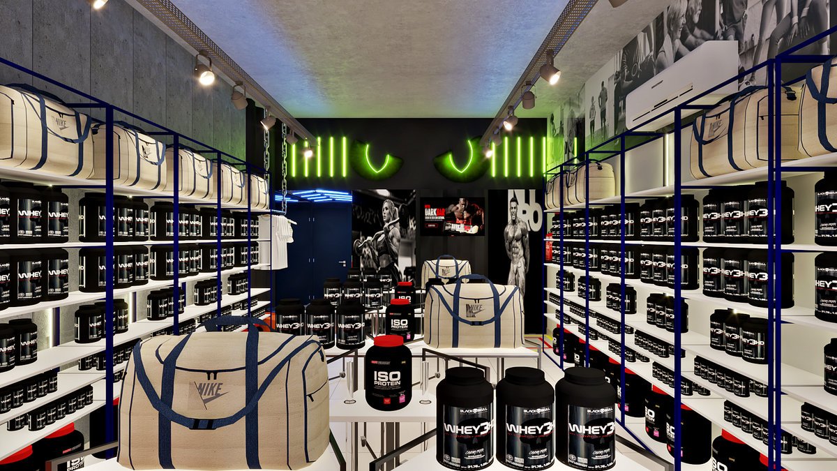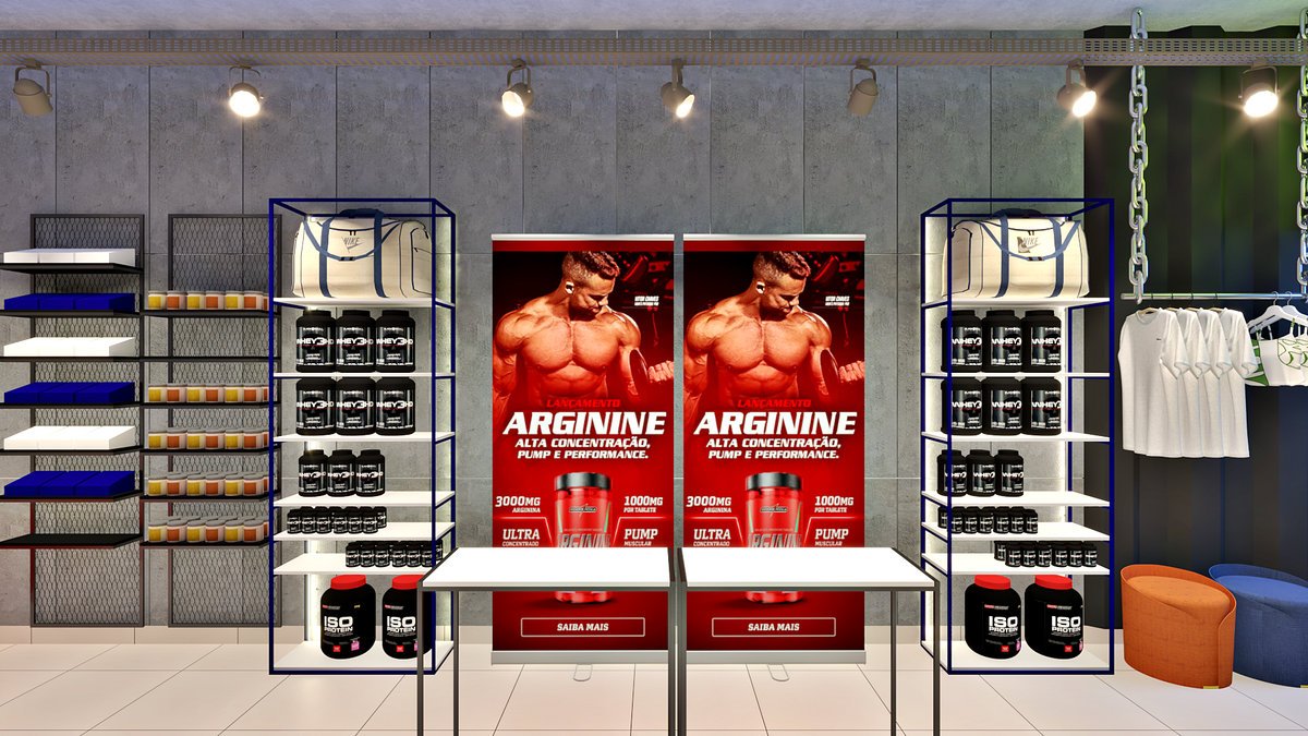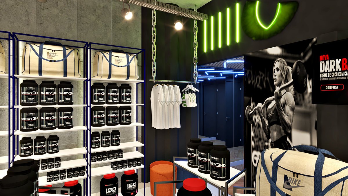 A loja de suplementos mais irada de Cascavel – Ceará! Com essa missão, eu e Raíssa Lima, minha grande amiga e designer de interiores, desenvolvemos este projeto cheio de autenticidade para chamar a atenção de pedestres e motoristas das avenidas. Multifuncional, a loja não só atende o público final, como também serve de base para cursos, treinamentos e eventos. Por isso, cada cantinho foi pensado para se tornar um cenário único.