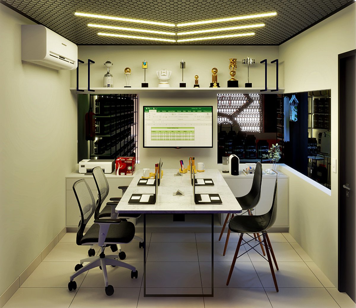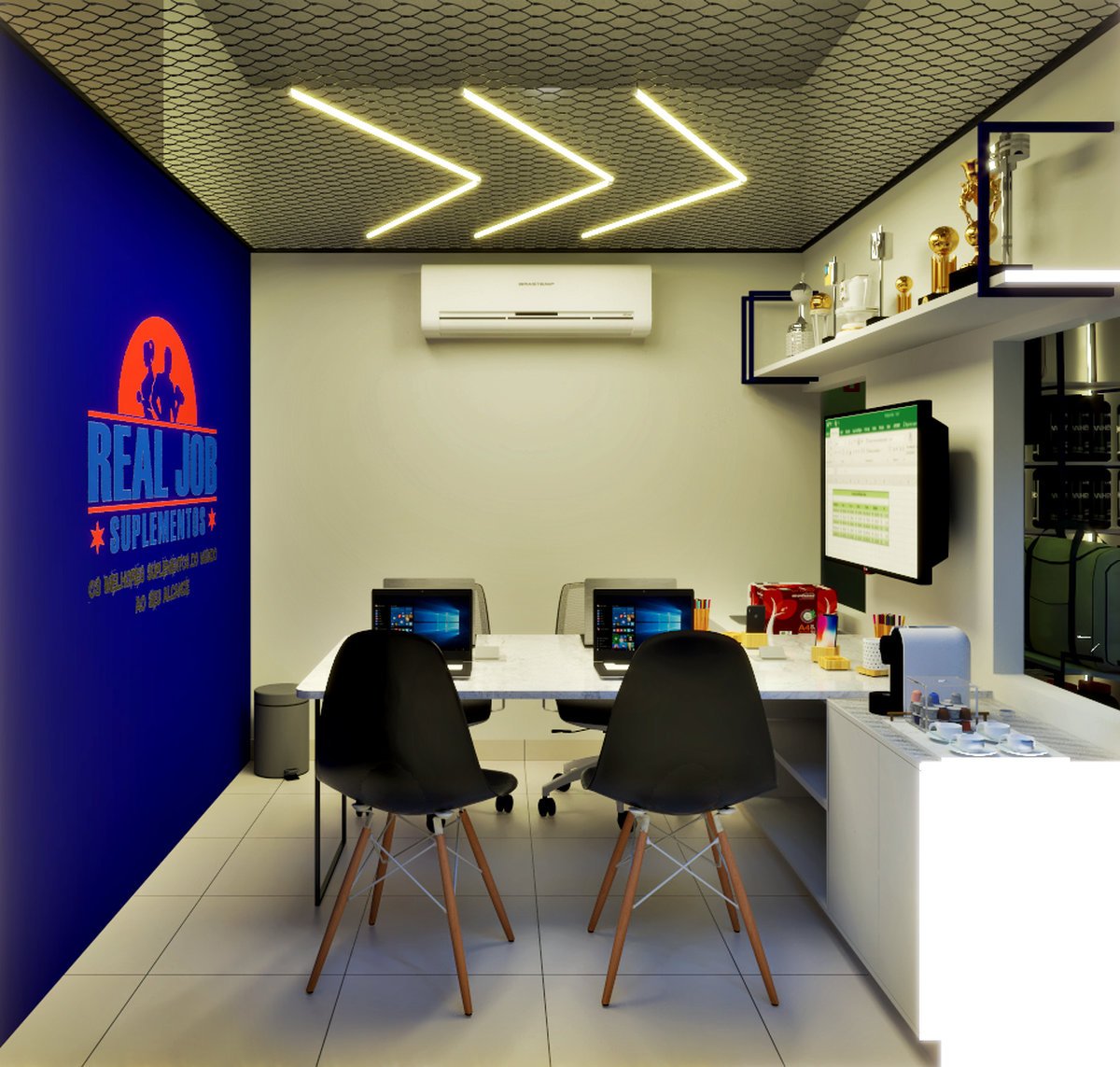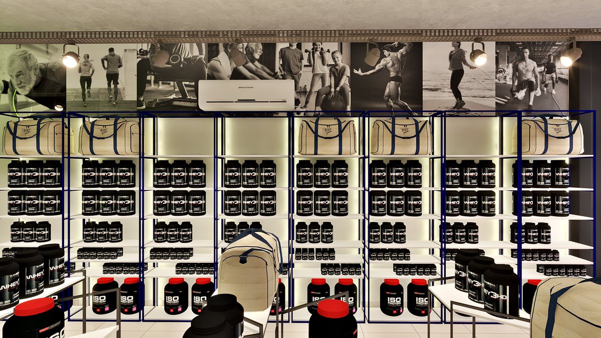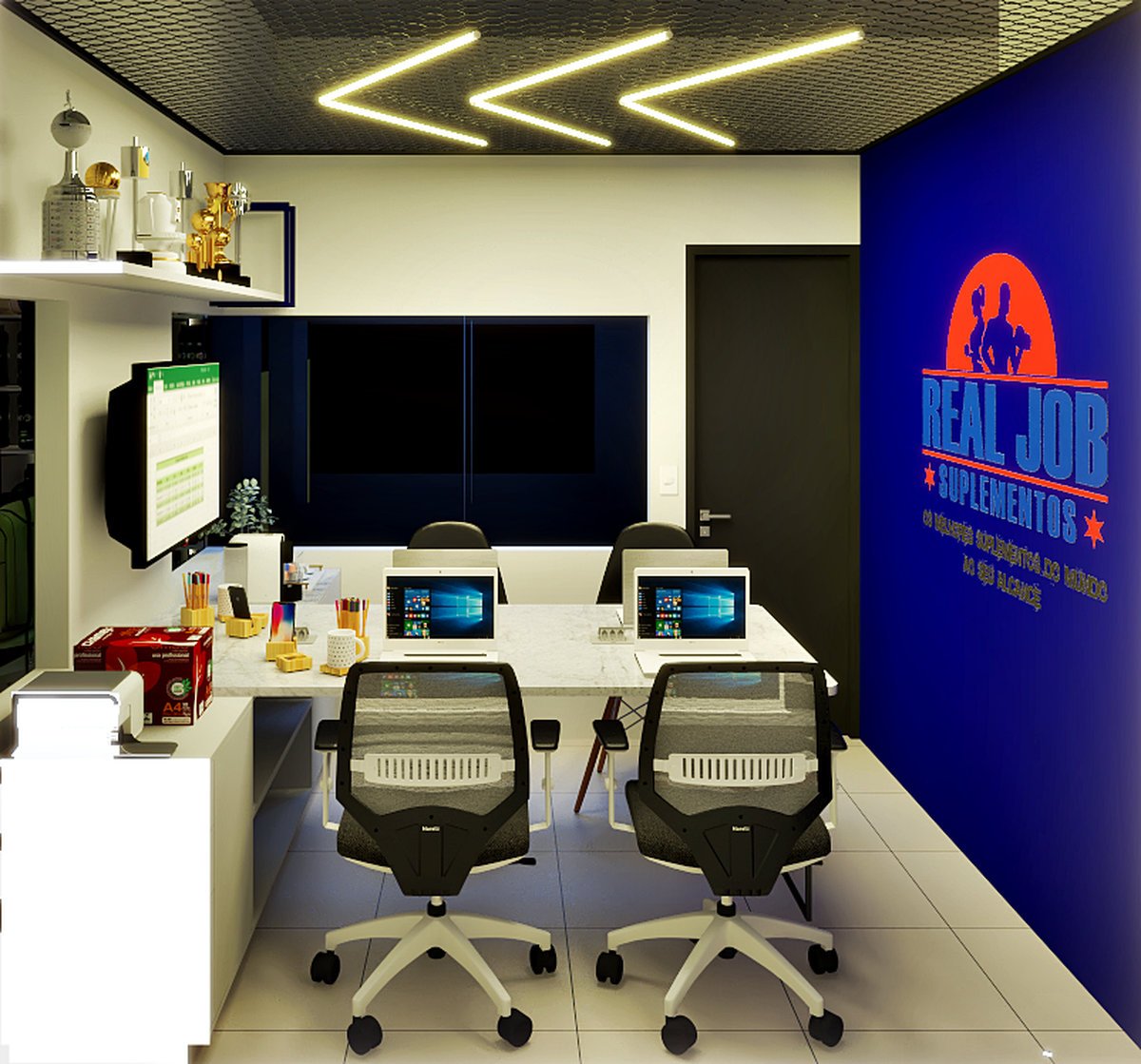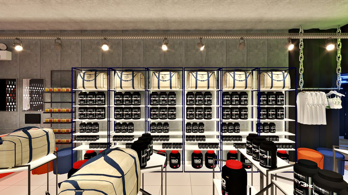 A loja de suplementos mais irada de Cascavel – Ceará! Com essa missão, eu e Raíssa Lima, minha grande amiga e designer de interiores, desenvolvemos este projeto cheio de autenticidade para chamar a atenção de pedestres e motoristas das avenidas. Multifuncional, a loja não só atende o público final, como também serve de base para cursos, treinamentos e eventos. Por isso, cada cantinho foi pensado para se tornar um cenário único.